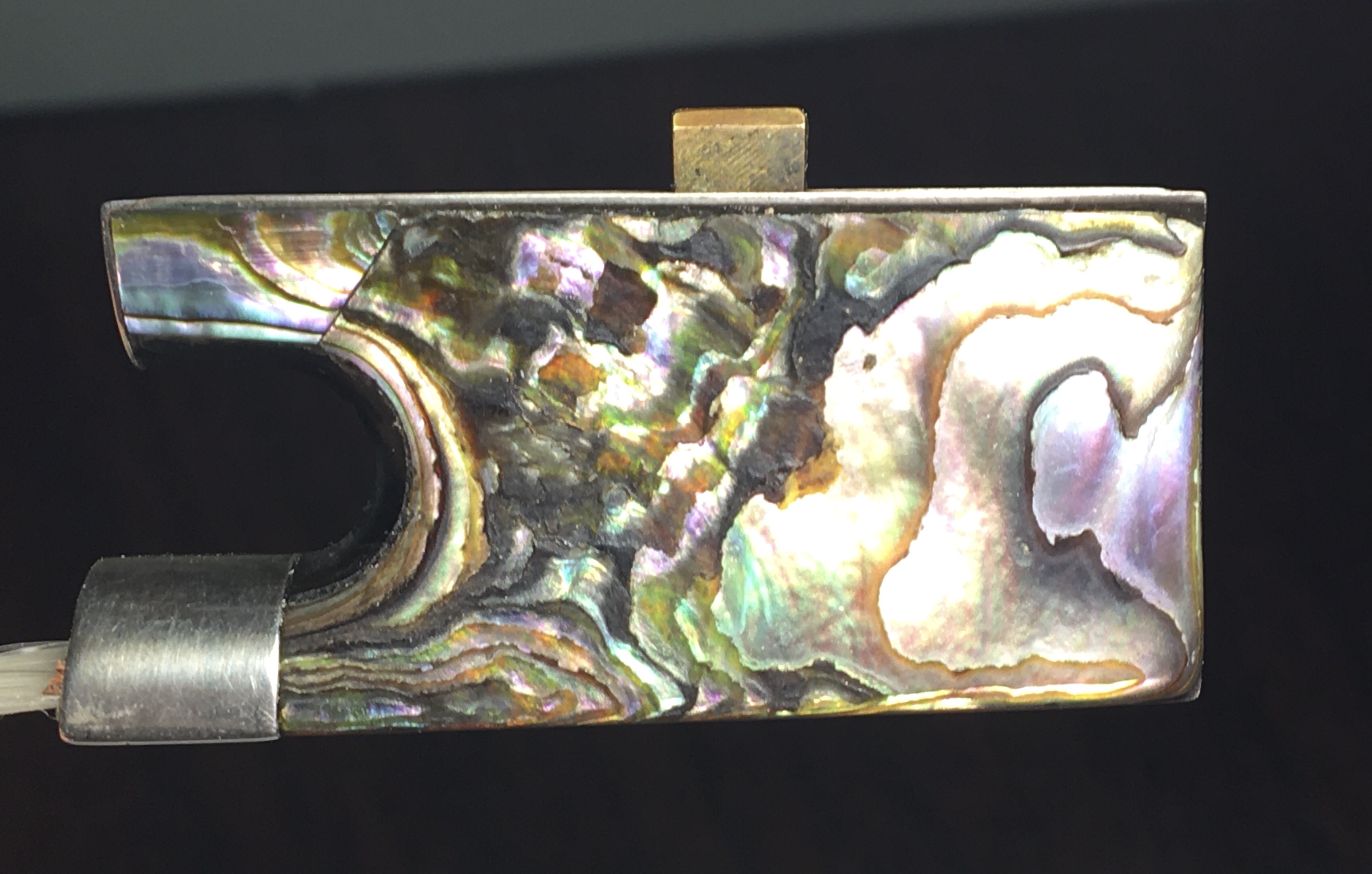 Shape: round stick Headplate: silver and ebony Materials: baleen (whalebone) and red-brown pernambuco Adjuster: ebony adjuster with 2 silver bands and abalone facets Eye: Abalone Frog: abalone heart ...