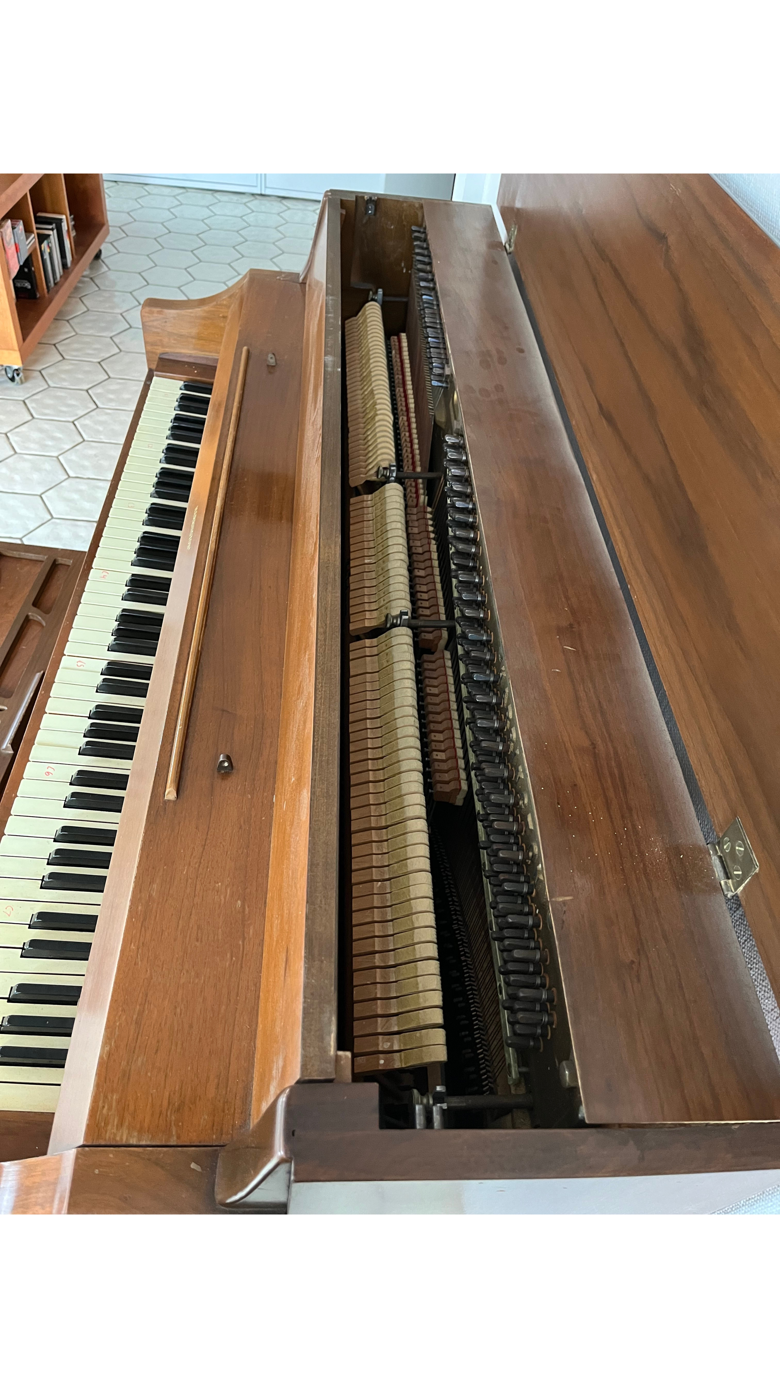 Serial Number: 167842 Type: Spinet Condition: Slightly Worn Height: 102 cm Depth: 60 cm Width: 145 cm
